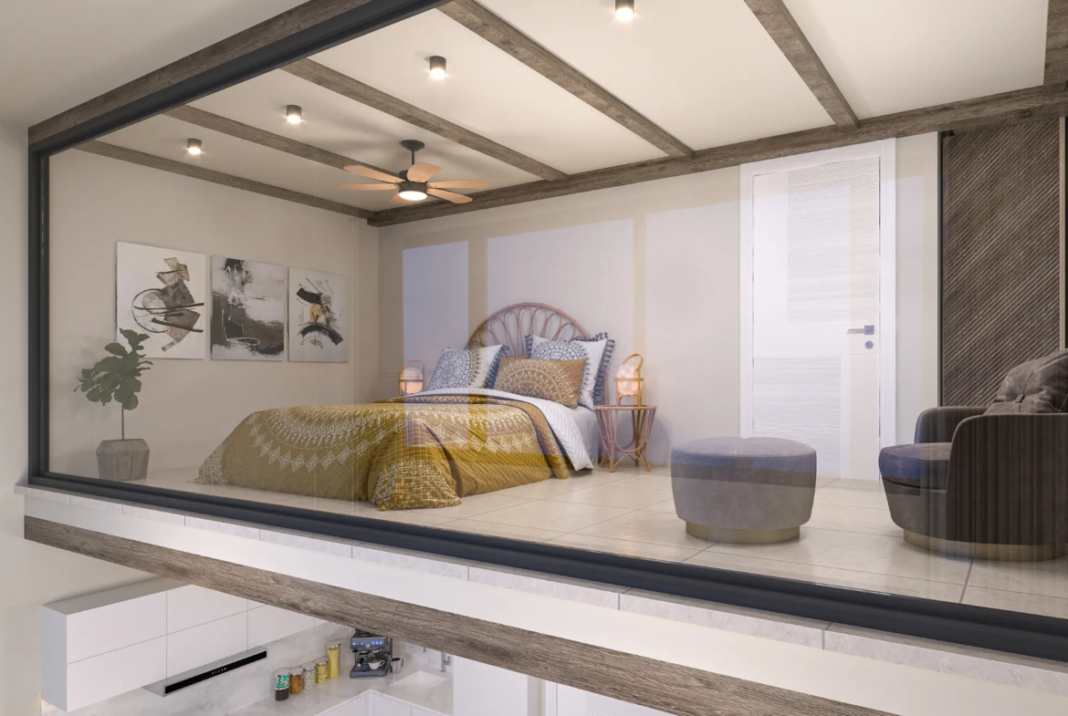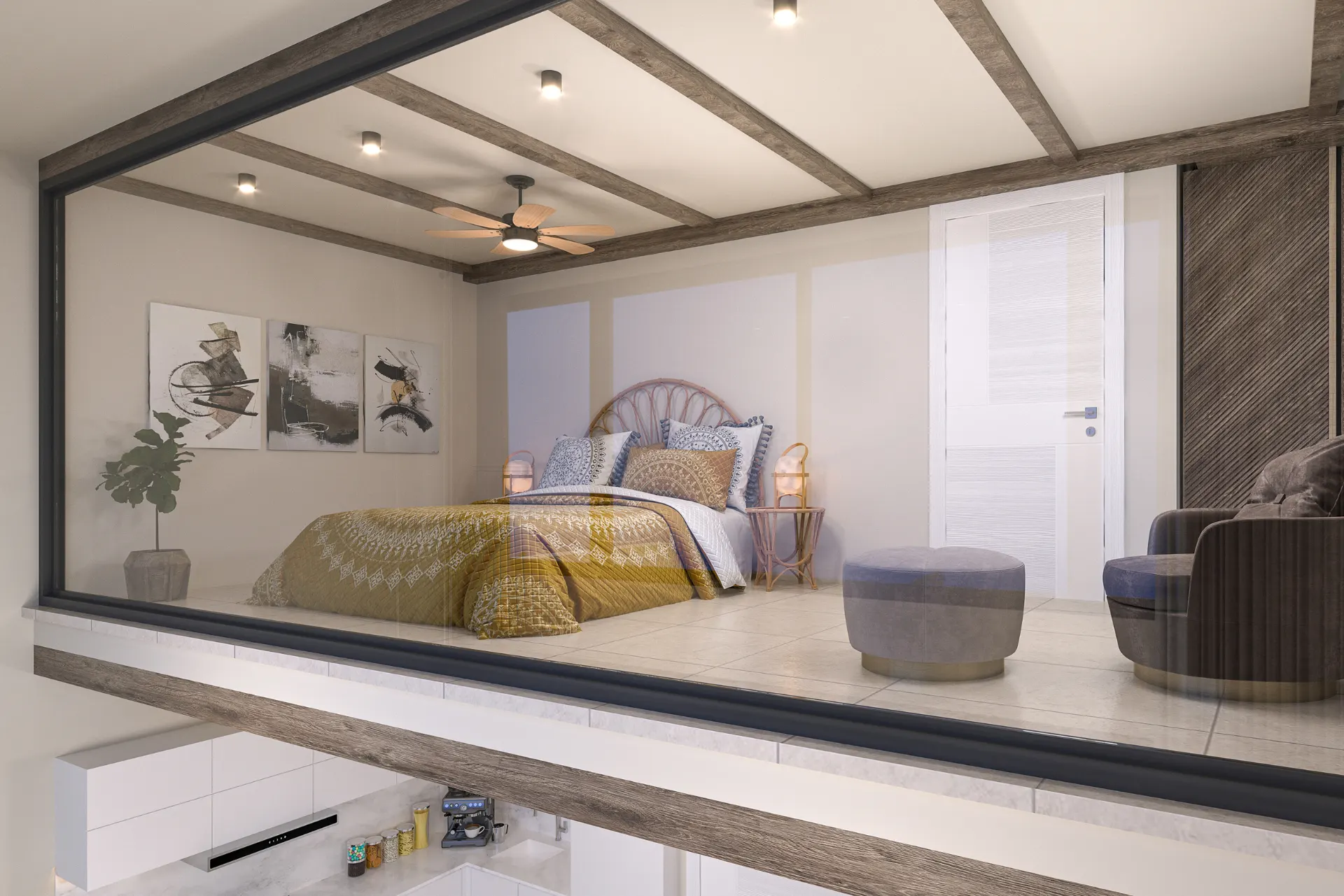 A two bedroom holiday home in North Cyprus with sea and mountain views in a seafront lifestyle community. Designed for easy ownership, with comfortable indoor space and generous outdoor room for dining and lounging. A short walk to the beach, with on-site spa, fitness, and communal pool to support lifestyle use and rentals.
